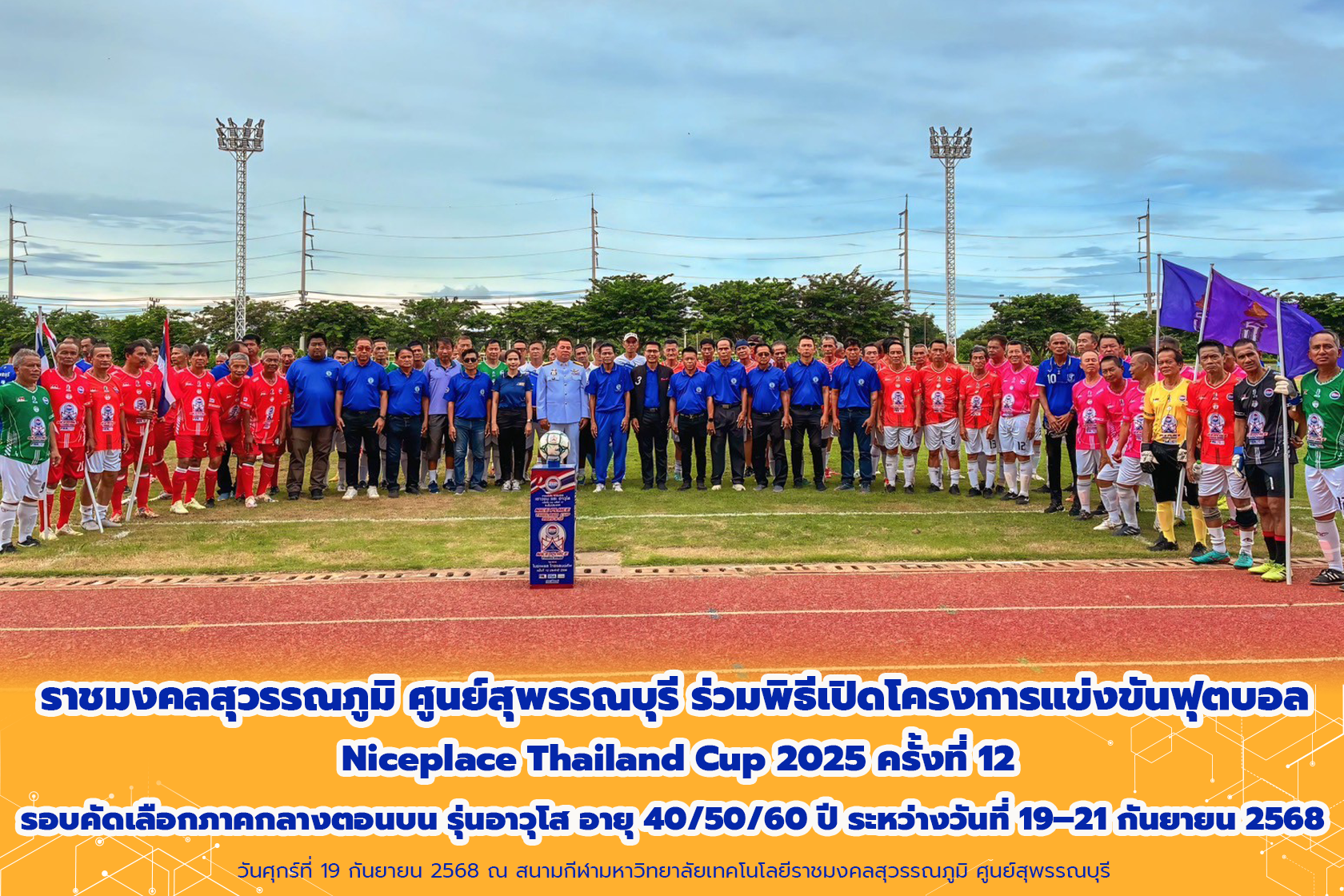 ราชมงคลสุวรรณภูมิ ศูนย์สุพรรณบุรี ร่วมพิธีเปิดโครงการแข่งขันฟุตบอล Niceplace Thailand Cup 2025 ครั้งที่ 12 | 295 ครั้ง เมื่อ 3 สัปดาห์ที่แล้ว