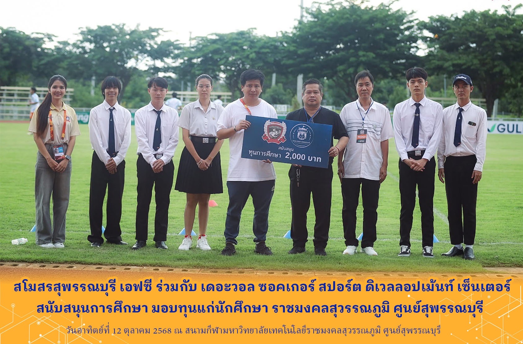 สโมสรสุพรรณบุรี เอฟซี ร่วมกับ เดอะวอล ซอคเกอร์ สปอร์ต ดิเวลลอปเม้นท์ เซ็นเตอร์ สนับสนุนการศึกษา มอบทุนแก่นักศึกษา ราชมงคลสุวรรณภูมิ ศูนย์สุพรรณบุรี | 266 ครั้ง เมื่อ 2 วันที่แล้ว