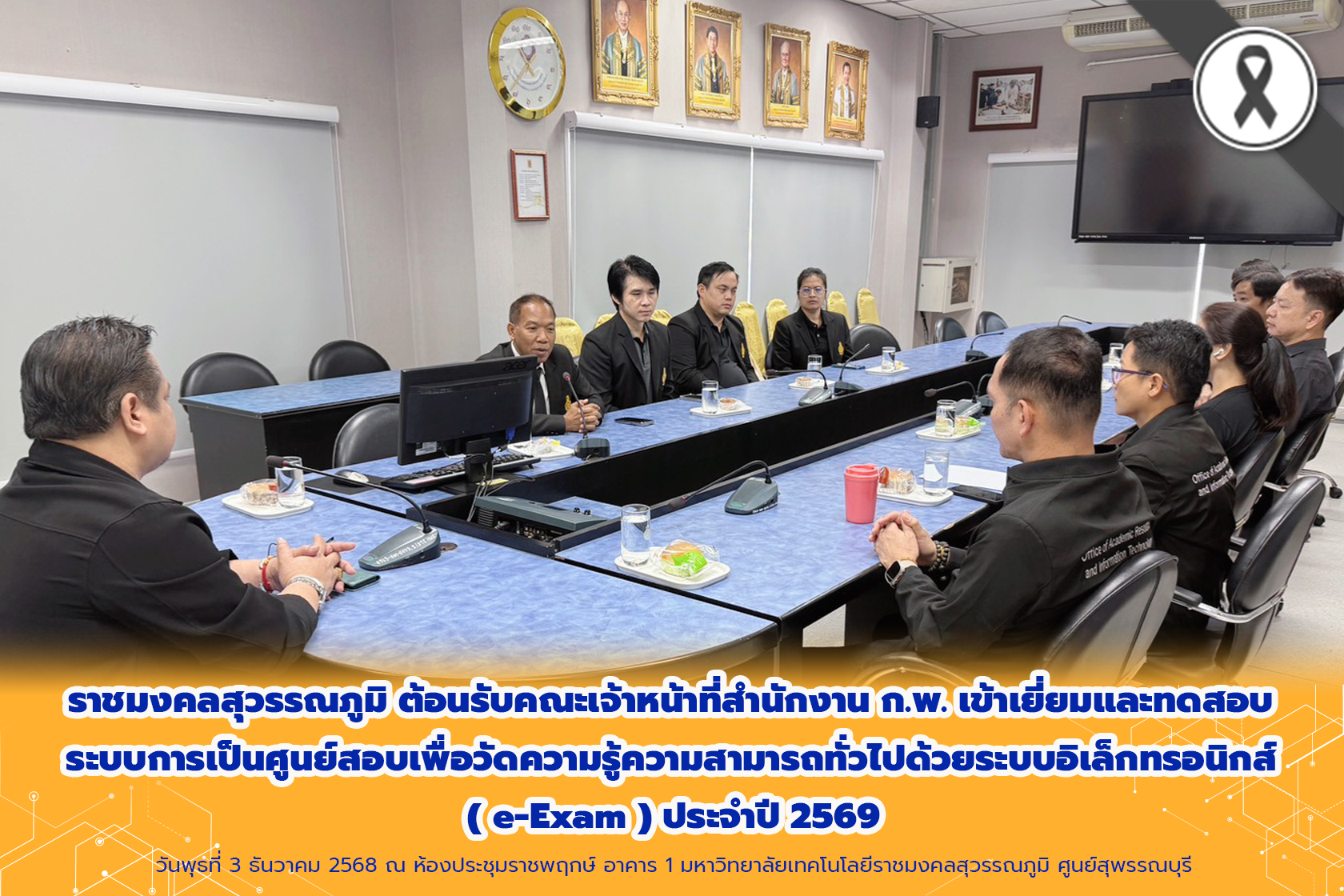 ราชมงคลสุวรรณภูมิ ต้อนรับคณะเจ้าหน้าที่สำนักงาน ก.พ. เข้าเยี่ยมและทดสอบ ระบบการเป็นศูนย์สอบเพื่อวัดความรู้ความสามารถทั่วไปด้วยระบบอิเล็กทรอนิกส์ ( e-Exam ) ประจำปี 2569 | 51 ครั้ง เมื่อ 4 วันที่แล้ว