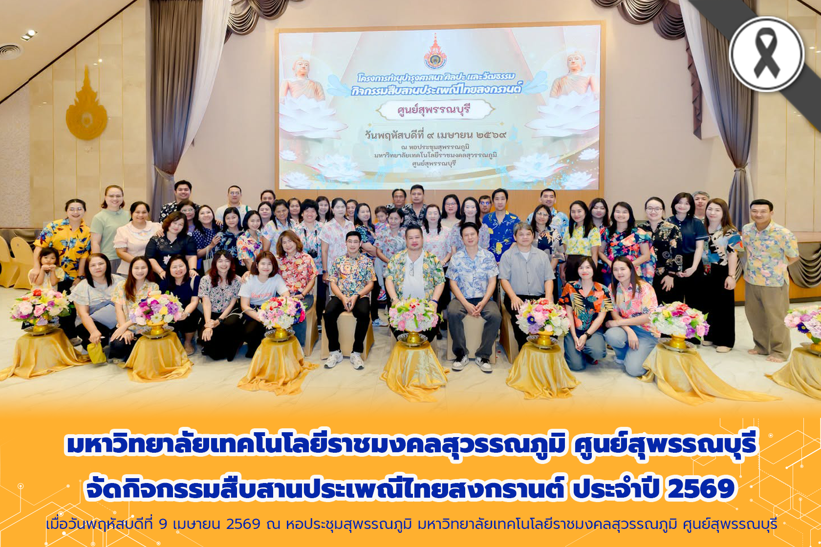 มหาวิทยาลัยเทคโนโลยีราชมงคลสุวรรณภูมิ ศูนย์สุพรรณบุรี จัดกิจกรรมสืบสานประเพณีไทยสงกรานต์ ประจำปี 2569 | 201 ครั้ง เมื่อ 3 สัปดาห์ที่แล้ว