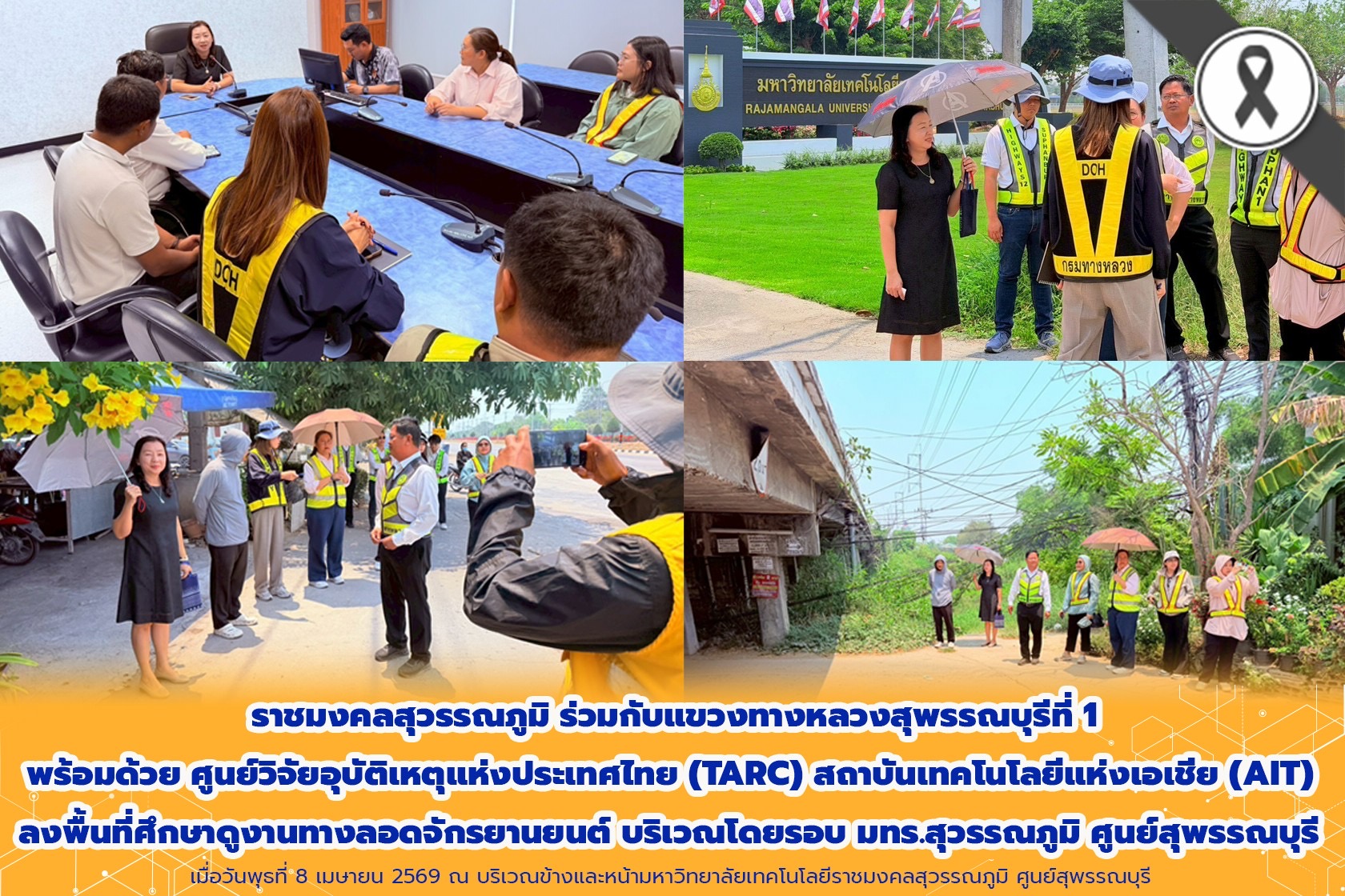 ราชมงคลสุวรรณภูมิ ร่วมกับแขวงทางหลวงสุพรรณบุรีที่ 1 พร้อมด้วย ศูนย์วิจัยอุบัติเหตุแห่งประเทศไทย (TARC) สถาบันเทคโนโลยีแห่งเอเชีย (AIT) ลงพื้นที่ศึกษาดูงานทางลอดจักรยานยนต์ ฯ | 234 ครั้ง เมื่อ 2 สัปดาห์ที่แล้ว