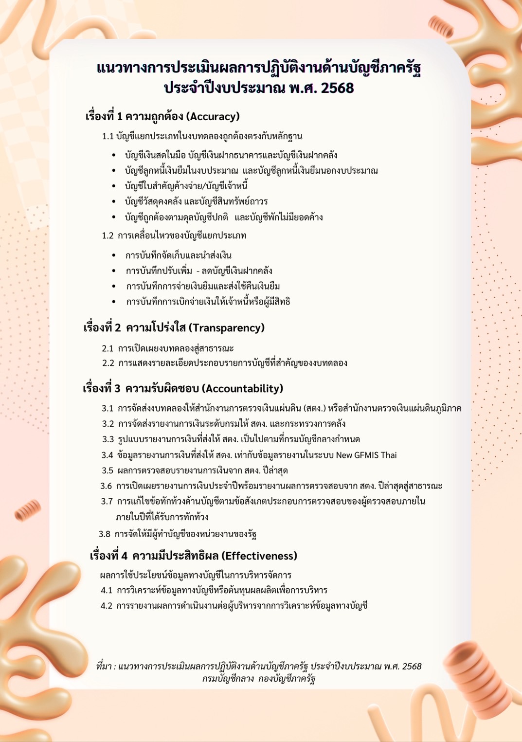 แนวทางการประเมินผลการปฏิบัติงานด้านบัญชีภาครัฐ ประจำปีงบประมาณ พ.ศ. 2568