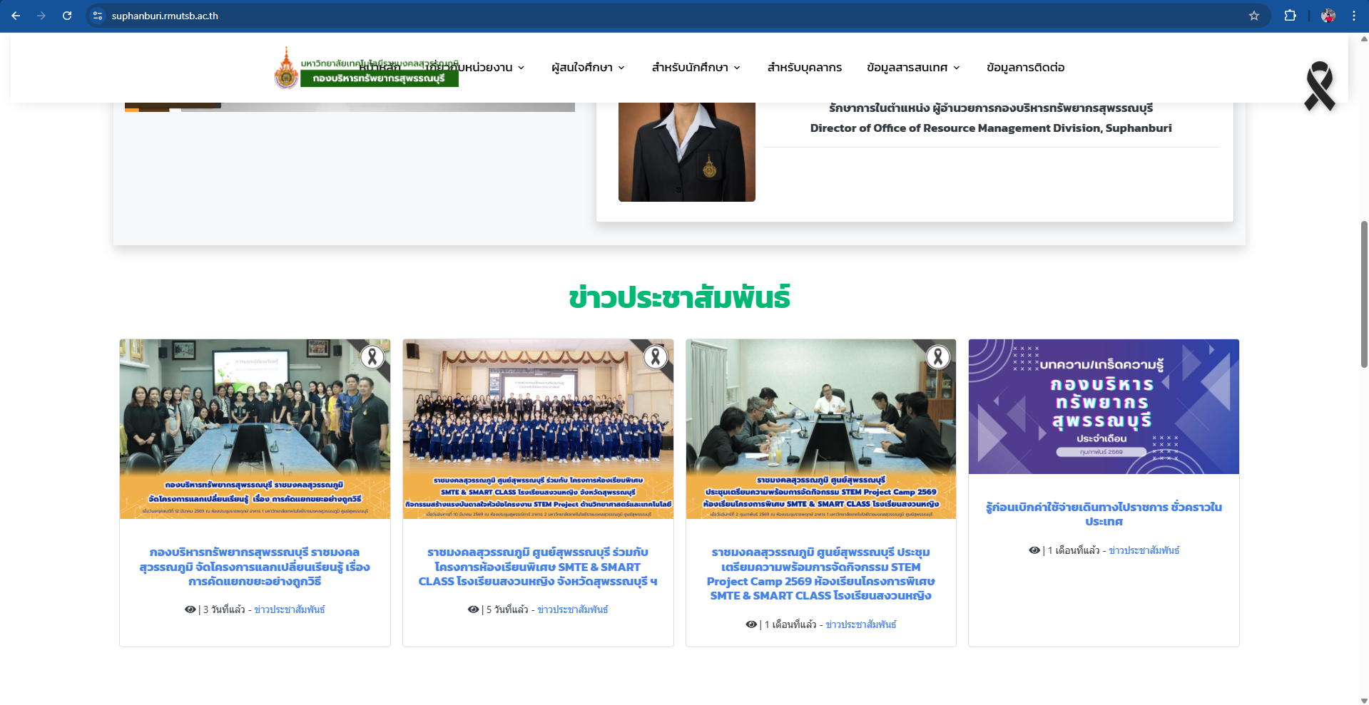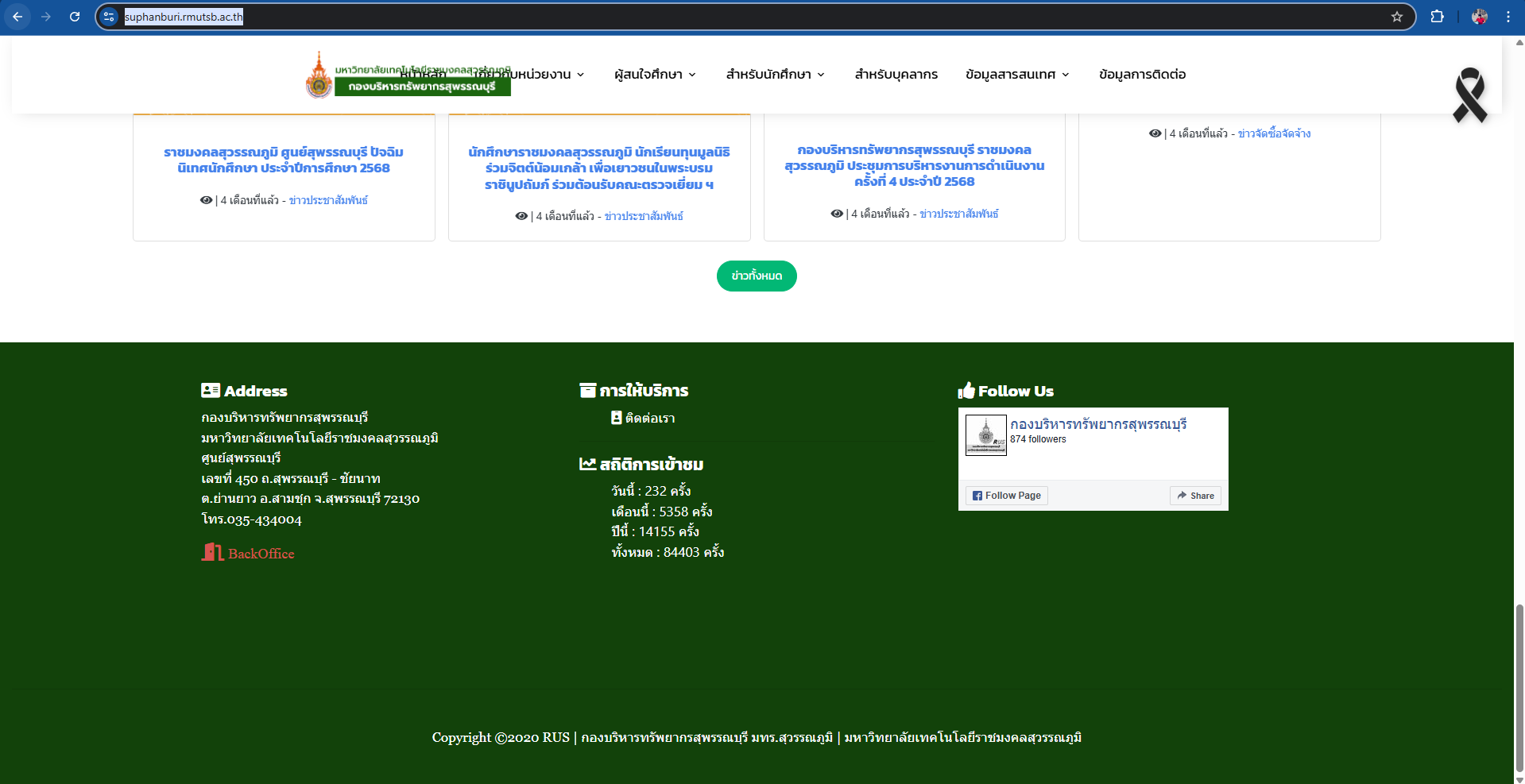 5.เปิด website กองบริหารทรัพยากรสุพรรณบุรี https://suphanburi.rmutsb.ac.th/ เลื่อนลงมาข้างล่างสุดเว็บไซต์ คลิกคำว่า Backoffice (ตัวอักษรสีแดง)