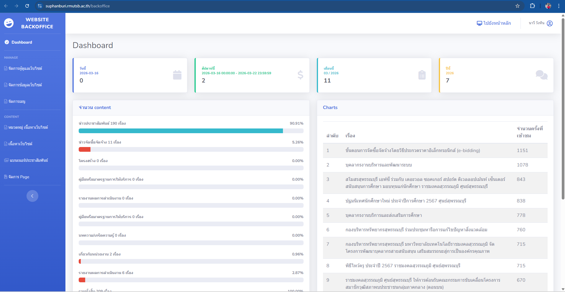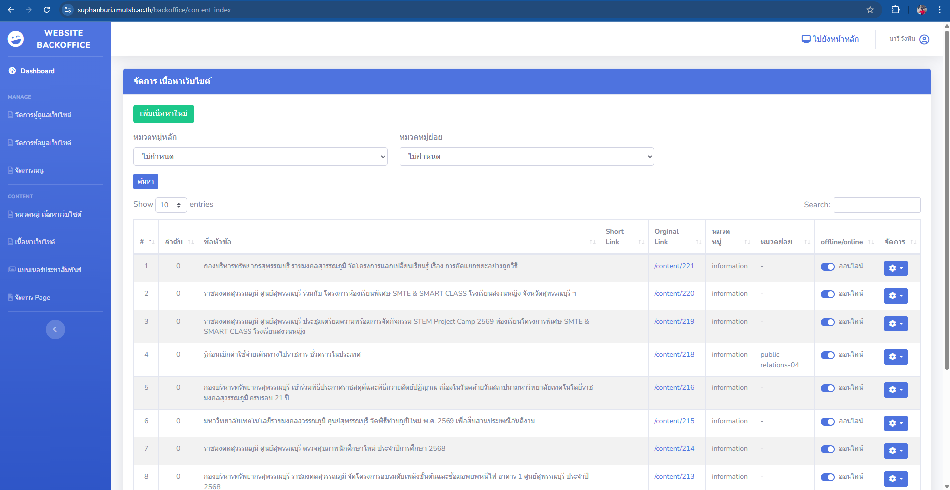 6.คลิกเลือกเมนูด้านซ้าย คำว่า เนื้อหาเว็บไซต์